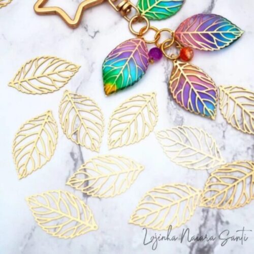 Produzido em ferro, o pingente de folhas é ideal para artesanatos em geral e apliques em resina epóxi. Muito utilizado para preenchimento de artesanatos como tábuas, Bandejas e chaveiros.