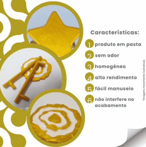 A linha de pigmentos em pasta está disponível nas cores: Amarelo, Azul, Branca, verde escuro, Laranja, Marrom, Preta e VermelhaPROPORÇÃO DE USO: