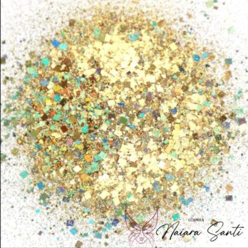 Glitter Quadrado Holográfico Flocado Especial Poliéster Importado – Cores Holográficas 10gr – Resina Epoxi | Artesanato | Decoração – Dourado