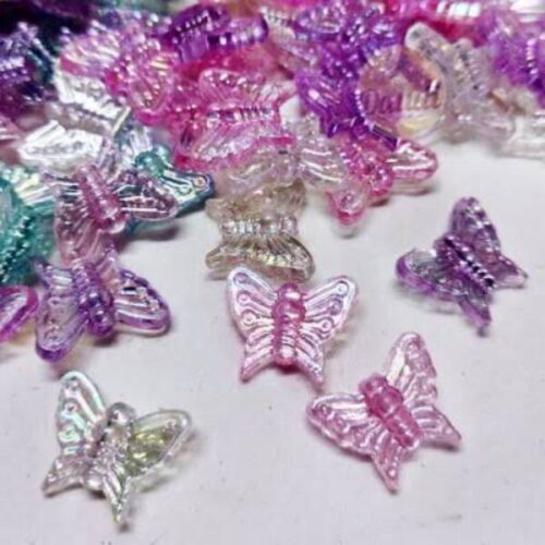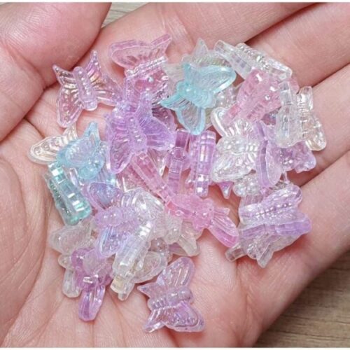 Miçangas Borboletas Translúcidas Irisadas – 10gr – Aprox 30pçs
