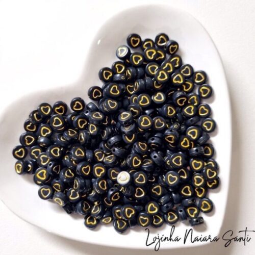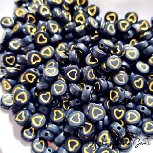 julho 18, 2023Miçangas Redondas Pretas com Corações Dourados