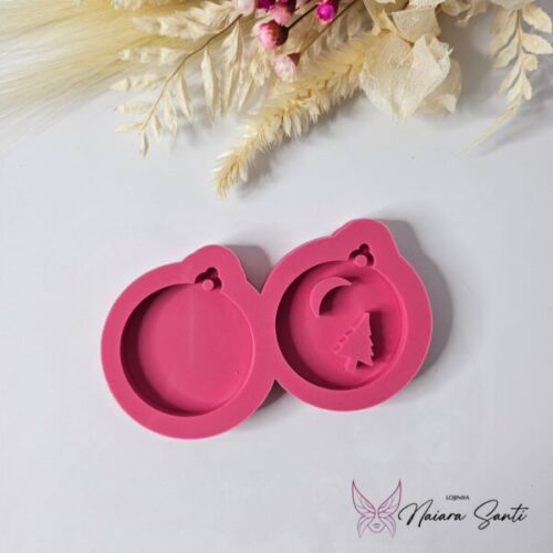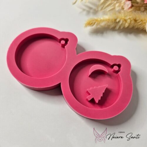 Molde para Resina – Bolinha de Natal Dupla com Lua e Pinheiro – NS0003