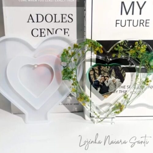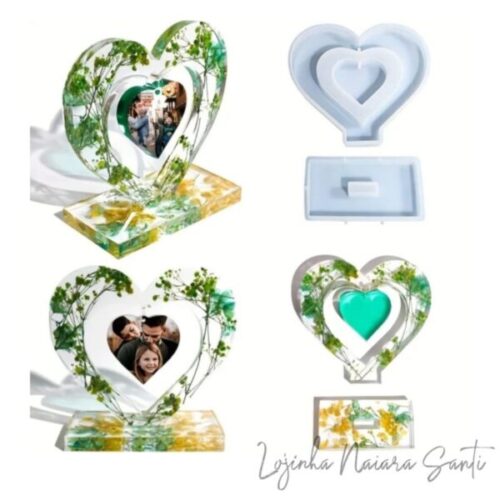 Molde pra Resina Epóxi em silicone – Porta Retrato Coração com Base